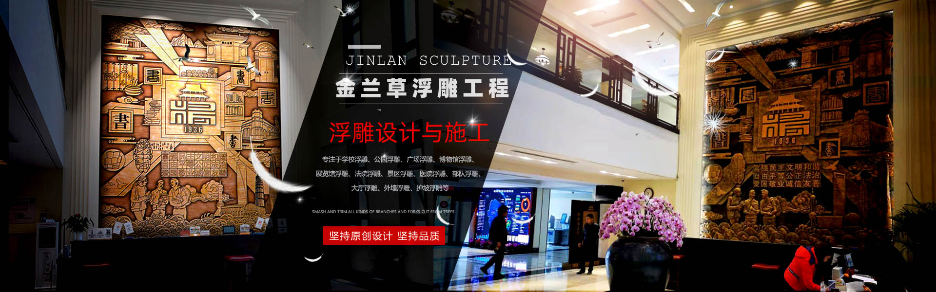 高品質(zhì)水泥浮雕行業(yè)的摸爬滾打中,金蘭草浮雕依據(jù)經(jīng)驗,能夠很準(zhǔn)確的預(yù)知出浮雕制作完成后的最終效果,也能